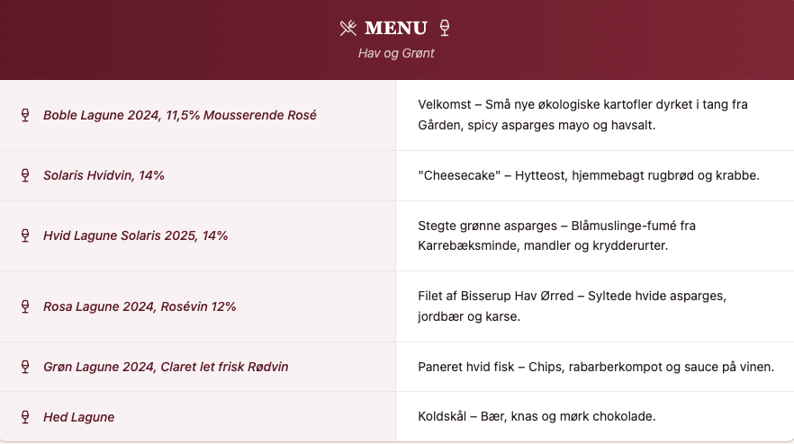 Forkæl dine smagsløg på Vesterhave Vingaards Winemaker’s Dinner – med enestående SEAFOOD arrangement, fredag d. 15/5-2026 kl 18.00.